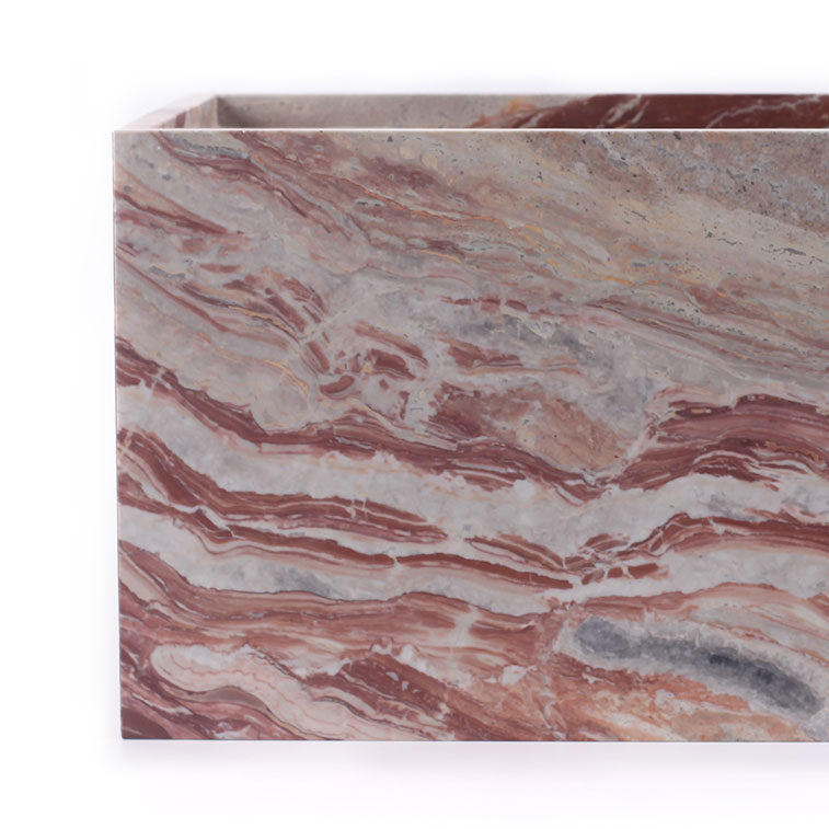 The Arabescato Rosso Wall Mounted Basin is a bold and luxurious choice for bathrooms, powder rooms, guest bathrooms, or commercial spaces. Its vibrant red tones and striking white veining create a stunning focal point, while the wall-mounted design saves space and adds a sleek, modern touch. Perfect for making a statement in both residential and commercial interiors.