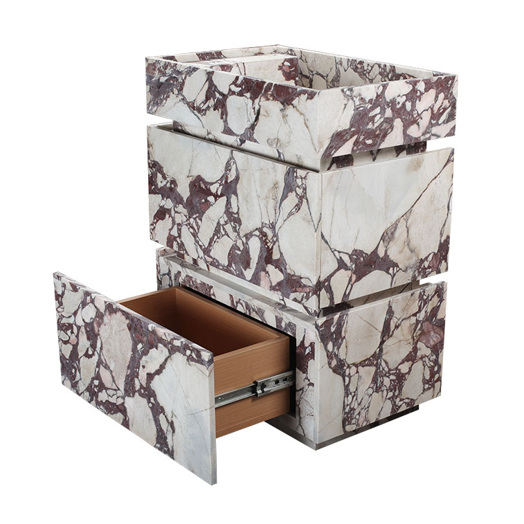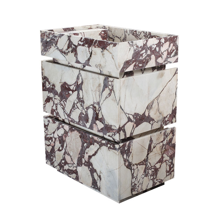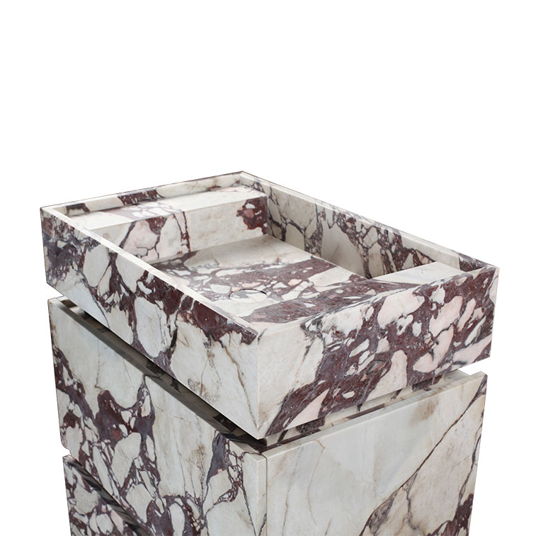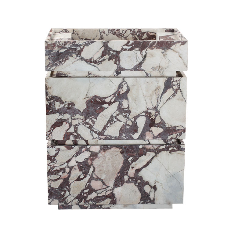 Crafted with meticulous attention to materiality, this Calacatta Viola Marble Honed Vanity Unit celebrates the dramatic elegance of genuine Italian stone. The rich violet veining set against a creamy white base creates an unmistakable visual signature, transforming the vanity into a sculptural focal point. An integrated marble sink ensures seamless continuity, while soft-close drawers offer refined, functional storage. Thoughtfully designed for effortless installation, this piece brings gallery-level sophistication and enduring quality to any bathroom interior.