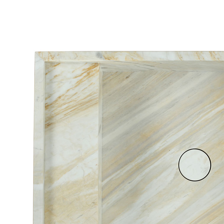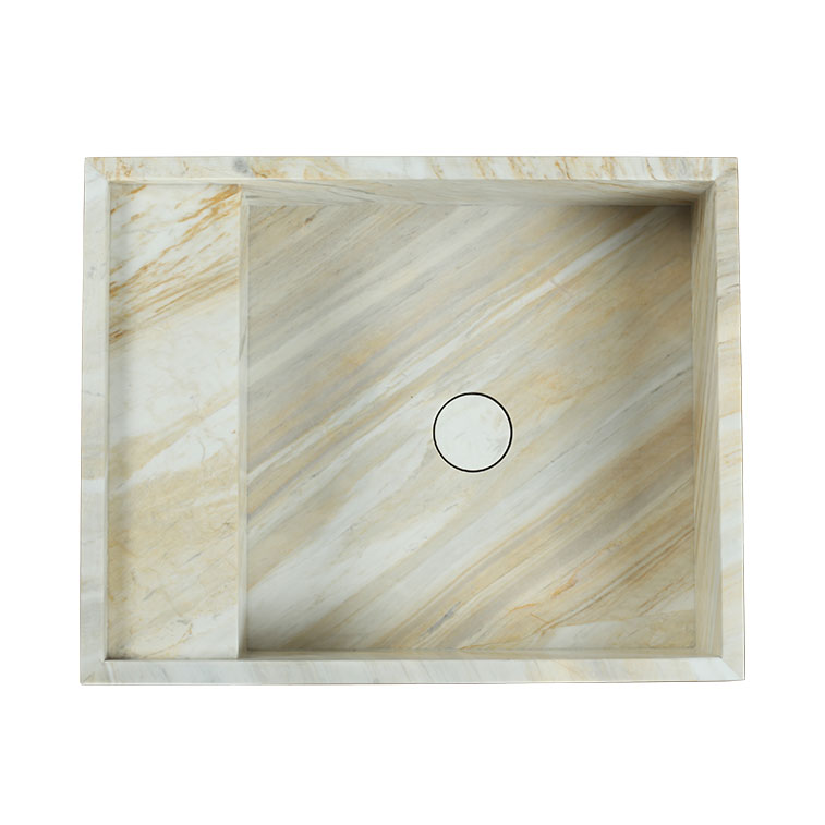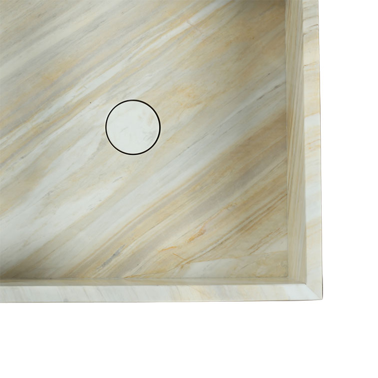 Elevate your bathroom with the Gold Santorini Freestanding Basin. Featuring warm golden tones blended with soft cream and subtle veining, this honed marble basin exudes natural radiance and refined character. Its clean rectangular silhouette adds a modern edge while highlighting the stone’s unique beauty, making it a striking and timeless centrepiece for any space.