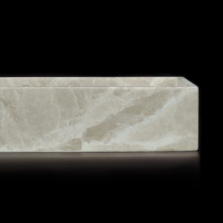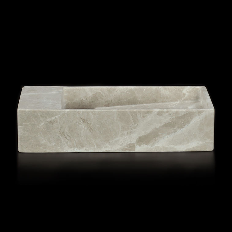 This Senorita Grigio Marble Filled Honed Wall Mounted Basin is a sleek and contemporary choice for compact bathrooms and powder rooms. Carved from a single block of Señorita Grigio Marble, it highlights the stone’s soft grey tones and elegant natural veining for a calm, refined aesthetic. Its low-profile, wall-mounted design suits minimalist interiors, offering practicality without sacrificing sophistication.