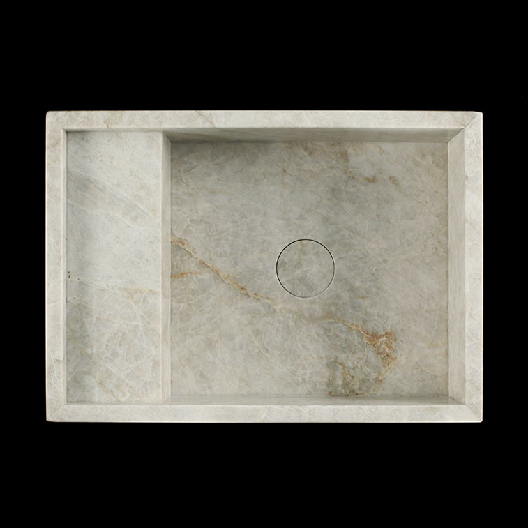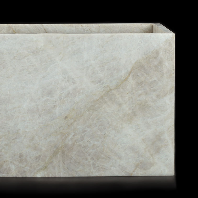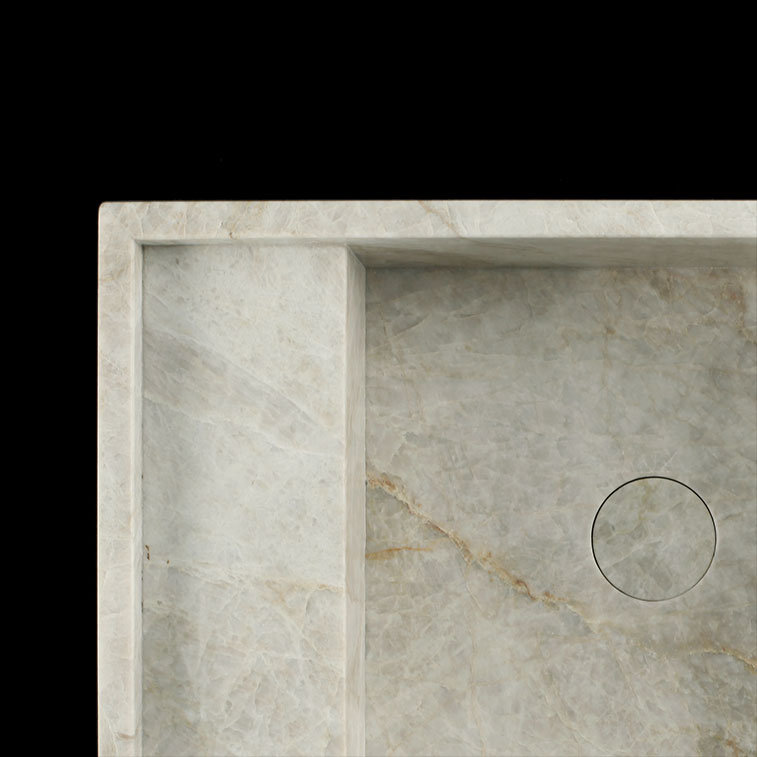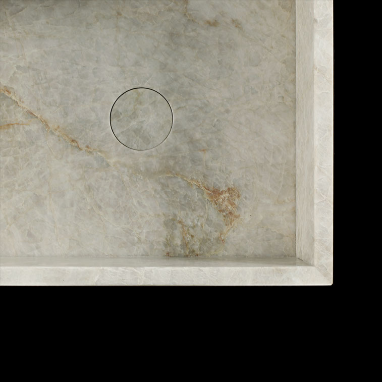 Taj Mahal Quartzite’s warm neutral palette and delicate veining give this basin a timeless presence. The wall-mounted design keeps the look light, allowing the stone’s gentle movement to stand out. Soft to the eye and balanced in proportion, it elevates any bathroom with a calm, natural sophistication—a subtle centrepiece for your bathroom.