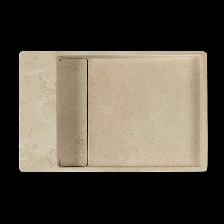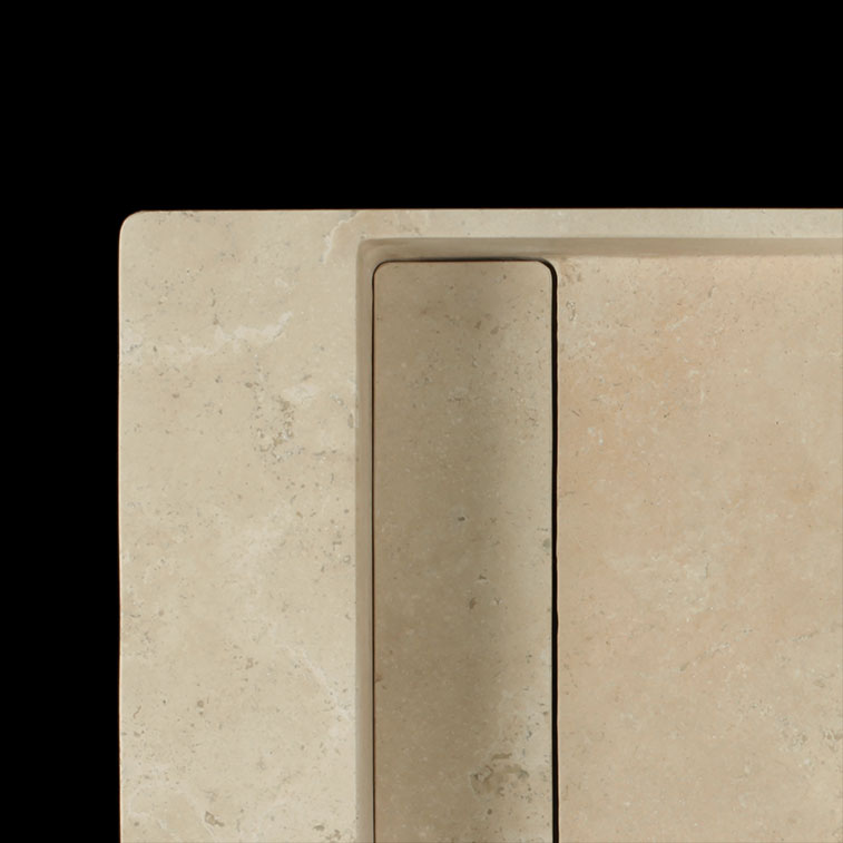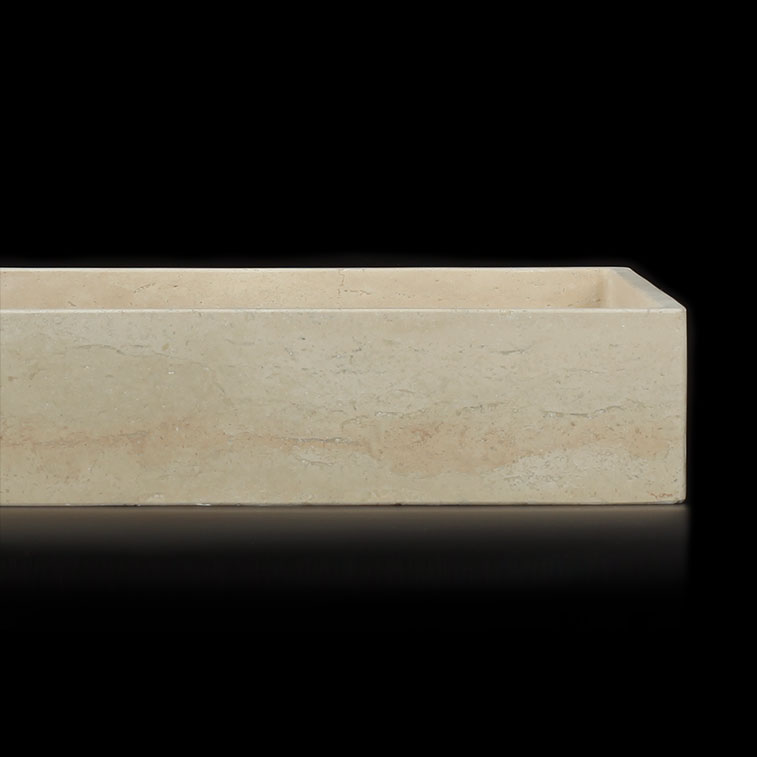 Crafted from a single block of Travertine Classico Light, this filled and honed wall-mounted basin brings timeless natural elegance to compact bathrooms and powder rooms. The cross-cut pattern reveals soft, warm tones and subtle cloud-like movement, creating a serene, organic aesthetic. Its streamlined, wall-mounted design maximises space while showcasing the beauty of natural travertine, offering both practicality and refined sophistication.