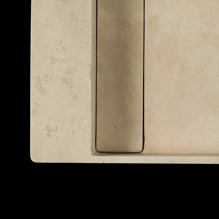 Crafted from a single block of Travertine Classico Light, this filled and honed wall-mounted basin brings timeless natural elegance to compact bathrooms and powder rooms. The cross-cut pattern reveals soft, warm tones and subtle cloud-like movement, creating a serene, organic aesthetic. Its streamlined, wall-mounted design maximises space while showcasing the beauty of natural travertine, offering both practicality and refined sophistication.