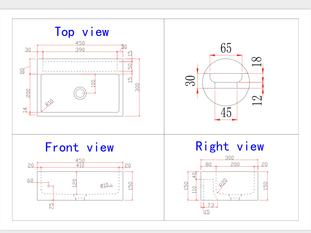L:450 W:300 H:150 mm